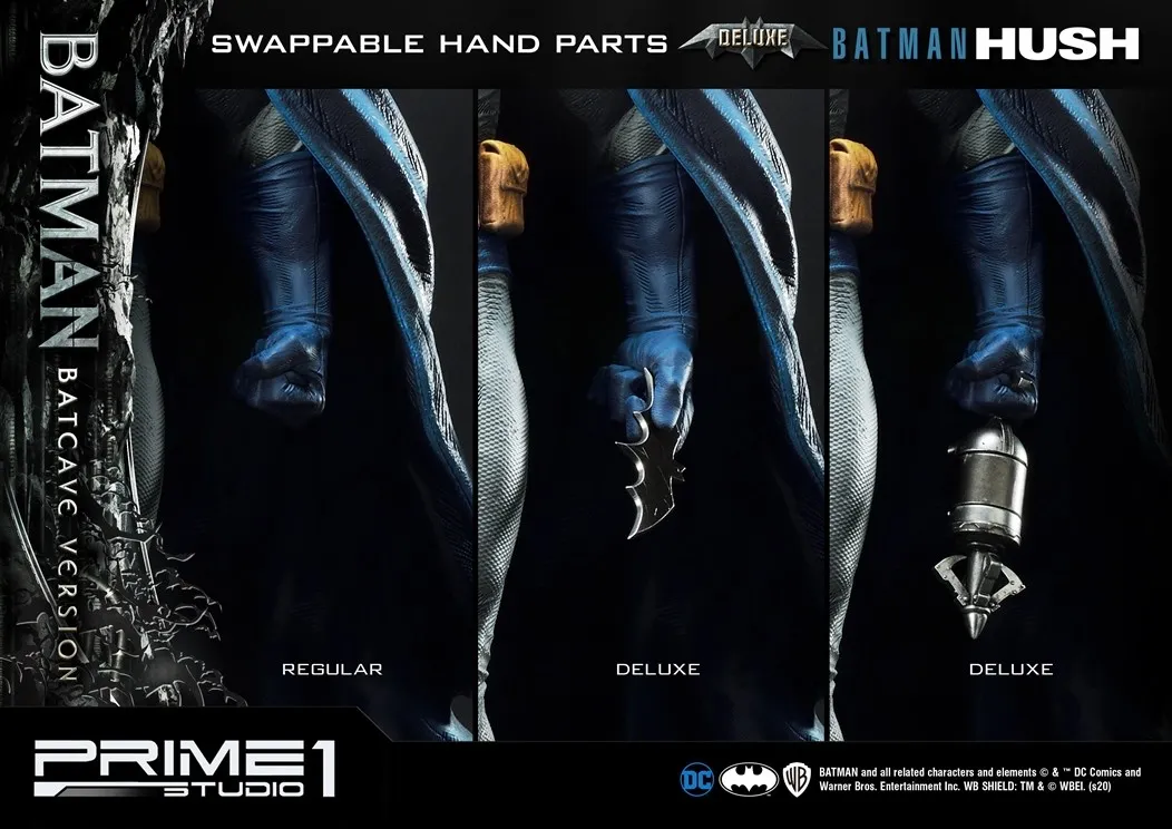 Batman Batcave Deluxe Versiyon Heykeli, toplam dört alternatif Portre (Normal, Bruce Wayne, Clenched Jaw, Smirk), üç Head Stand Büstü ve üç değiştirilebilir sol parça (Grappling Hook, Batarang, Griripped Hand) içerir.