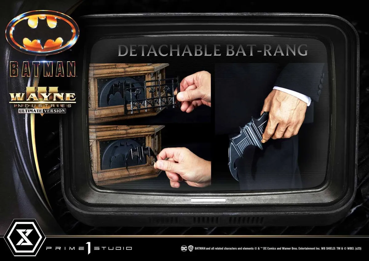 Ultimate Versiyon, ön siparişinizi bir sonraki seviyeye taşır: Bruce Wayne’in 1:3 Ölçekli İKİNCİ bir heykeli dahildir. Boyu sadece 90 cm olan, Gotham’daki en zengin playboy hayırsever Bruce Wayne, incelik ve aciliyeti harmanlamış gibi görünen benzersiz ve ikonik ifadesini takıyor. Zamanın ikonik görünümüne sadık kalan klasik bir smokini giyiyor. Sakinliği, ağırlığını kayıtsızca bir tarafa kaydırarak, ölçülü duruşunda hissedilebilir. Bruce Wayne, sol eline çıkarılabilir bir Batarang’ın yerleştirilebileceği Wayne Malikanesi temalı bir taş kaide üzerinde duruyor. Koleksiyonunuzda onun Nihai Sürümüne sahip olmak, ister sıkı koleksiyonerler, ister Batman hayranları veya sadece DC Comics evreninin sıradan bir takipçisi olsun, kesinlikle herkesin ağzını açık bırakacak.