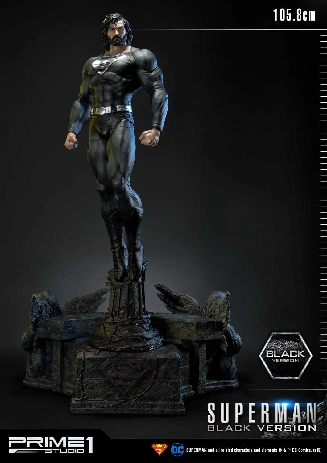 Bu 1:3 ölçekli Superman Siyah Versiyon heykeli, tabanındaki bir döndürme mekanizması sayesinde her yöne sergilenebilen, yaklaşık 42 inç yüksekliğindedir.